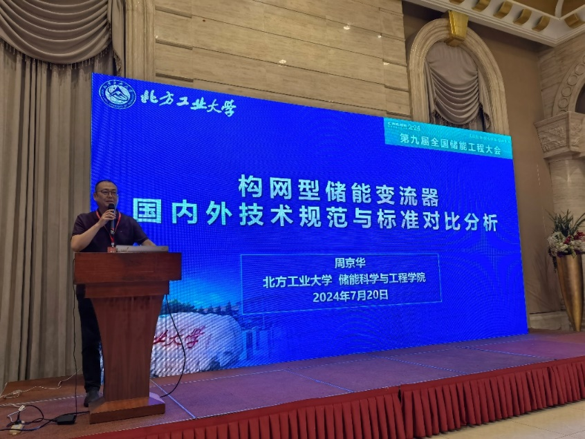大会期间,周京华老师在“计算化学与绿色储能设计”分论坛作了题为“构网型储能变流器国内外技术规范与标准对比分析”的主题报告。报告围绕构网型储能变流器的功能分类、技术指标和合规性验证等方面,系统梳理了国内外的白皮书以及技术标准,阐述了国内外标准中构网型储能变流器的性能量化指标、功能测试内容与要求,解读了相关指标的技术内涵,最后对构网型PCS技术标准的优化方向进行了展望。报告通过对比国外标准,为我国的标准制定、功能测试以及工程应用提供借鉴和指导。