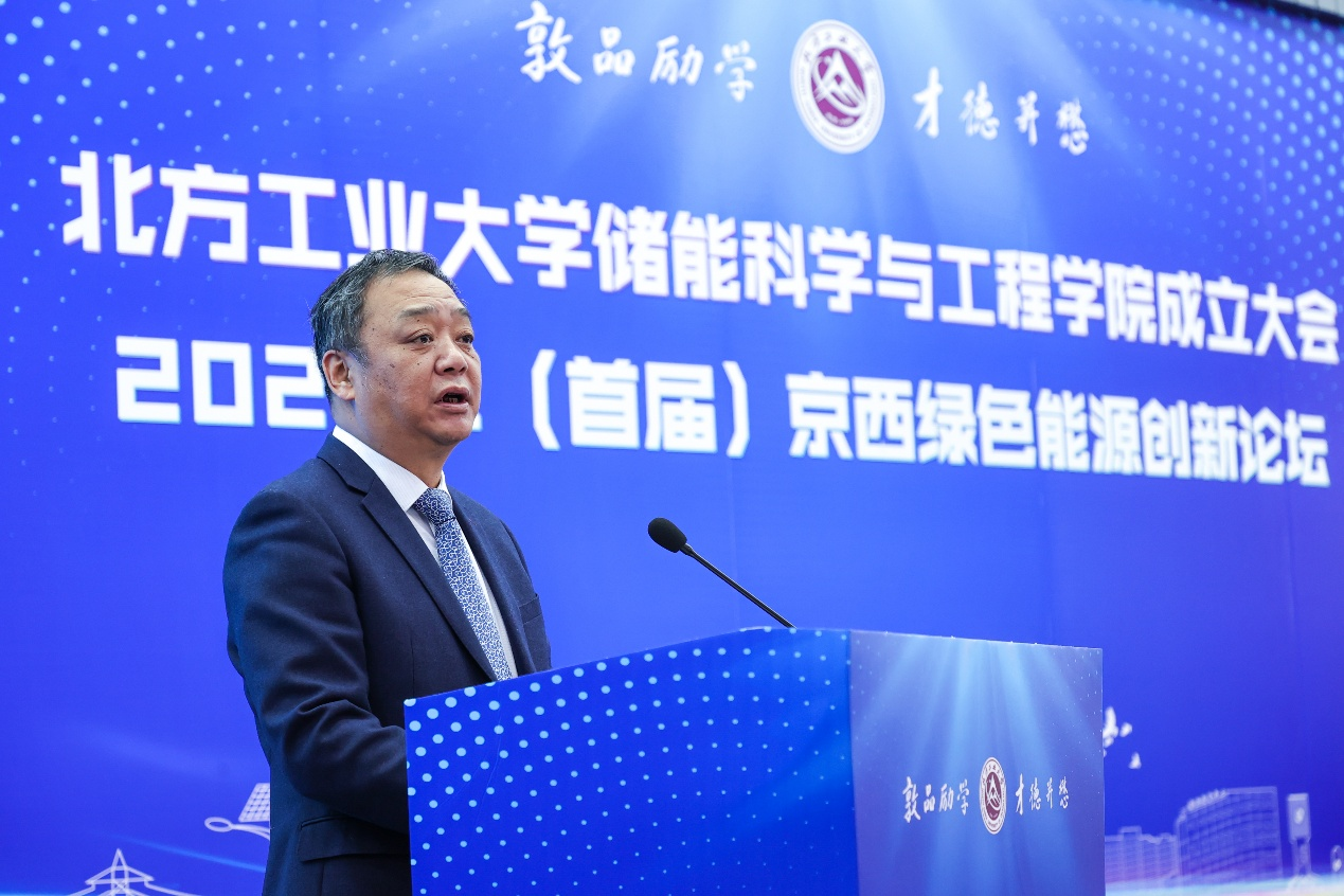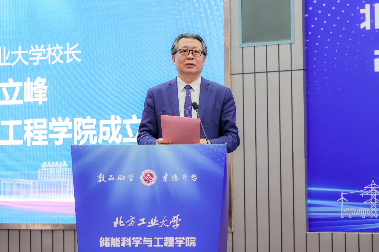 张立峰在成立大会上致辞。他回顾了学校的发展历史,指出自1978年兴办本科以来,学校师生不断适应国家和北京市发展需要,推动学科转型升级,使“老工科”赋予了“新内涵”,开出了“新花朵”。特别是近三年来,学校步入发展 “快车道”,实现了“新人才”“新学科”“新博士点”“新校区”的“四新”发展,师生对学校未来发展充满信心。张立峰强调,成立yl88858永利集团是学校顺应时代发展潮流,响应国家战略需求,培养高素质储能科学与工程人才,推动储能技术进步和产业发展的重大举措。学校将以yl88858永利集团为抓手,整合校内外优质资源,打造一流的储能交叉学科研究平台,推动储能科学与工程领域的学术交流和技术创新,为我国储能产业的发展贡献智慧和力量,为服务首都高质量发展、推动我国能源革命和可持续发展做出应有的贡献。